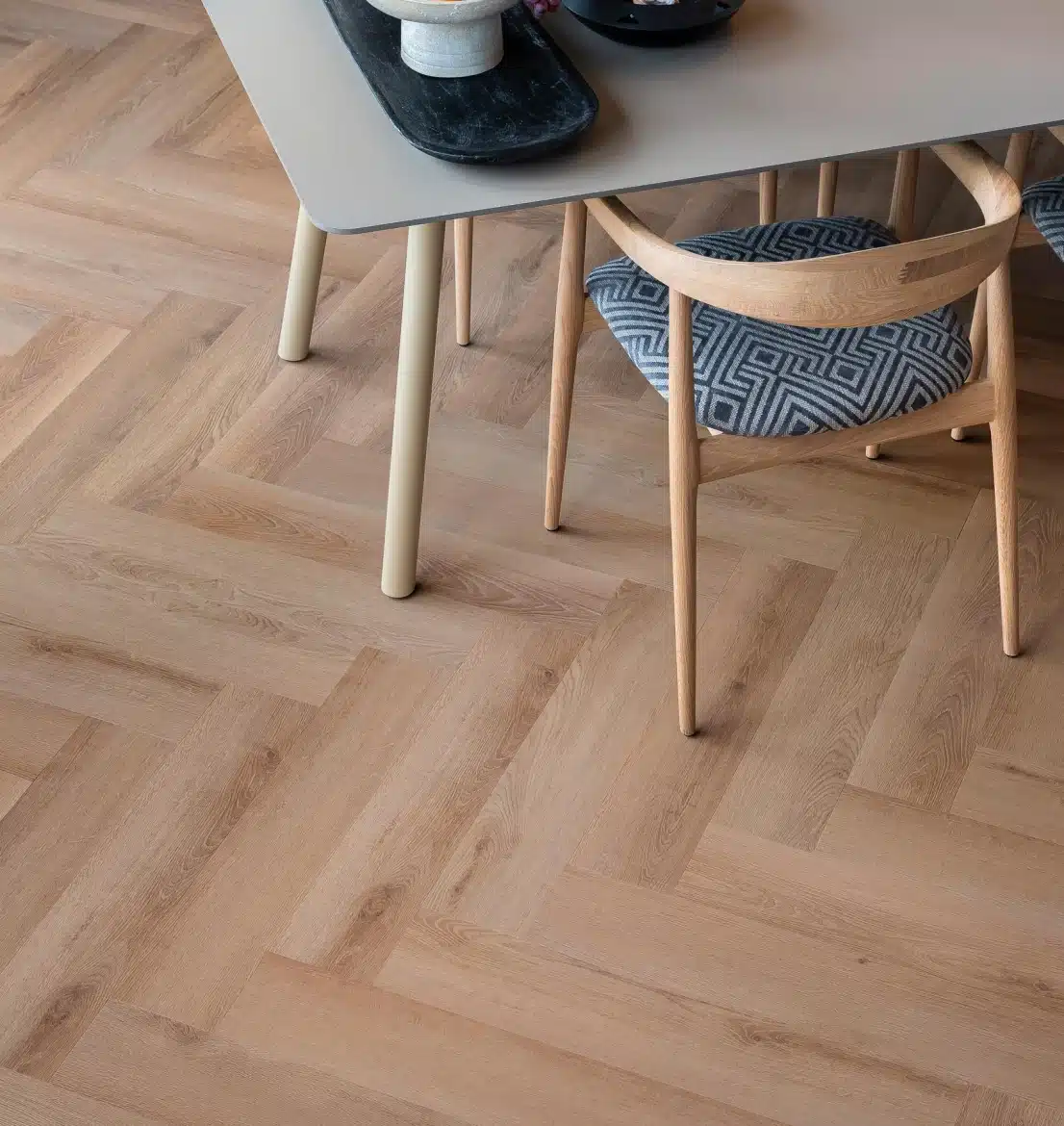 Hebeta PVC visgraat vloeren hebben een herkenbare, warme uitstraling. De houttinten zijn zorgvuldig afgestemd en de structuren voelen natuurlijk aan, waardoor de vloer goed past in zowel moderne als landelijke interieurs.